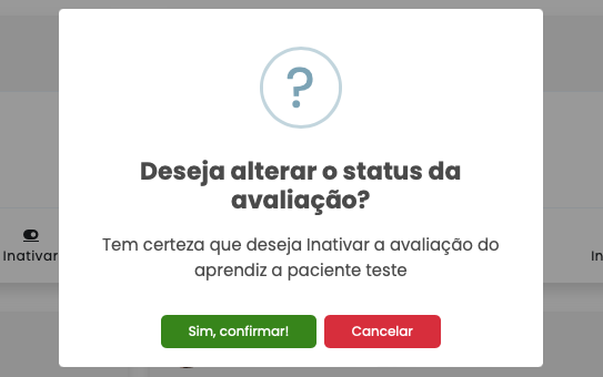 Para inativar seja um aprendiz, um profissional, uma sessão, uma avaliação um Plano Terapêutico e etc.